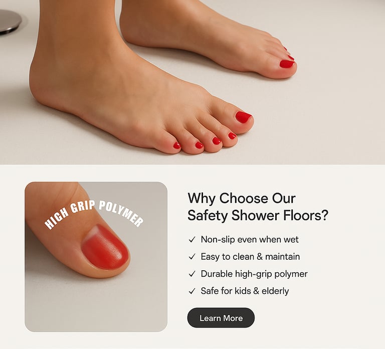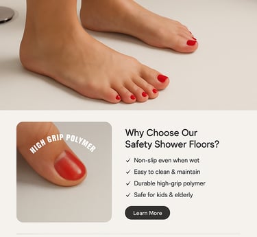 Stylish, slip-free surfaces for bathrooms, gyms, and hospitals ensuring safety and durability.